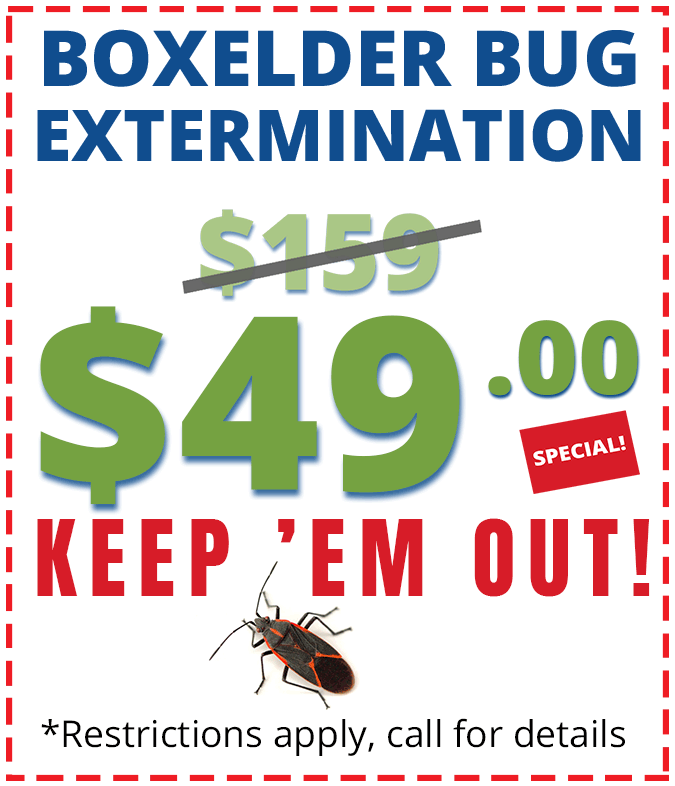 If you are struggling with a Boxelder bug infestation in your yard or home, call us today! We offer a Multi-step Boxelder Bug Exterminating Service that is proven to knock out the adult bug population in your yard and home and also works to control additional Boxelder bug outbreaks.